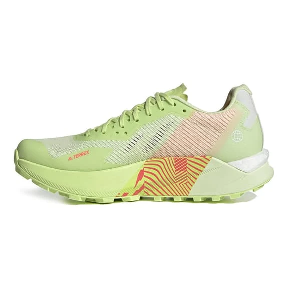 The adidas Terrex Agravic Ultra women’s shoes were created in collaboration with Ekaterina Mityaeva, one of the fastest trail runners in the world. One of the first adidas trail running shoes to incorporate a thermoplastic elastomer (TPE) plate made from 90% renewable carbon, the plate runs the length of the shoe to protect your foot from rocks on long mountain trails without adding unnecessary weight.the boost of BOOST technology and the lightness of Lightstrike technology combine to ensure optimal energy return in hilly terrain, cushion every stride and help you keep pace on technical trails.The Continental rubber compound outsole is inspired by gravel bike wheels and features molded lugs that give you excellent grip on technical trails. The top contains at least 50% recycled materials. Their aim is to come up with yet another solution to help eliminate plastic waste.