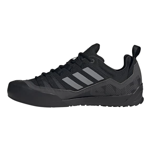 The adidas Terrex Swift Solo Approach shoes offer agility on trails, bouldering routes and steep terrain thanks to a grippy Traxion outsole and Pro-Moderator technology that maximizes the feeling of stability. The ripstop upper is highly resistant to wear and tear and the EVA midsole provides a more comfortable and lightweight ride. The top contains at least 50% recycled materials. Their aim is to come up with yet another solution to help eliminate plastic waste.
