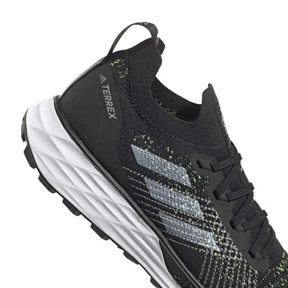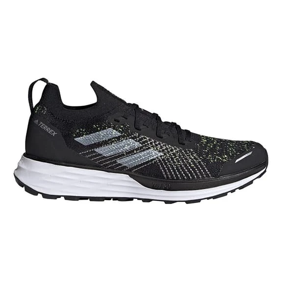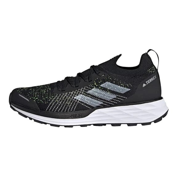 The adidas Terrex Two Primeblue shoes allow you to run faster on any terrain. Lightstrike technology makes your stride lighter. The adidas Primeknit mesh upper fits the foot like a glove and offers optimal support on uneven surfaces. The Continental rubber compound outsole ensures exceptional grip on rooty terrain and loose stones. Strategically placed seamless zones combine reinforcement and performance with superior comfort to eliminate distractions. The outsole with Continental rubber compound offers optimal grip on wet and steep terrain. This product has been made with Parley Ocean Plastic yarn recycled from plastic waste collected from islands, beaches and coastal areas to avoid polluting our oceans. Half of the fabric upper is made with 75% Primeblue yarn. Does not contain raw polyester.