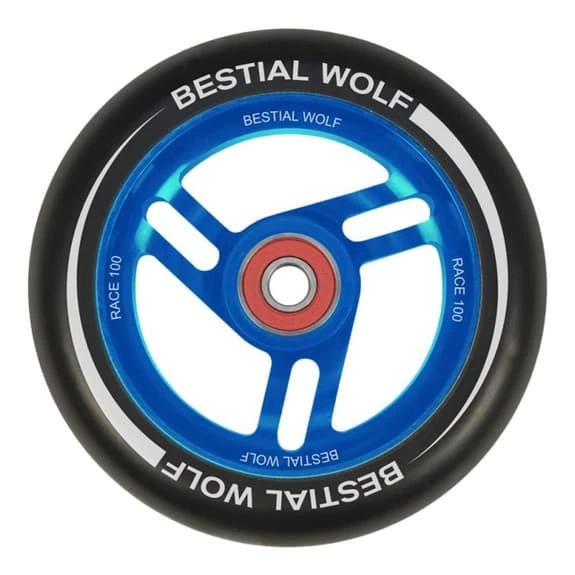 The Bestial Wolf Race 100 mm original wheel is strong and lightweight, built with an aluminum core.