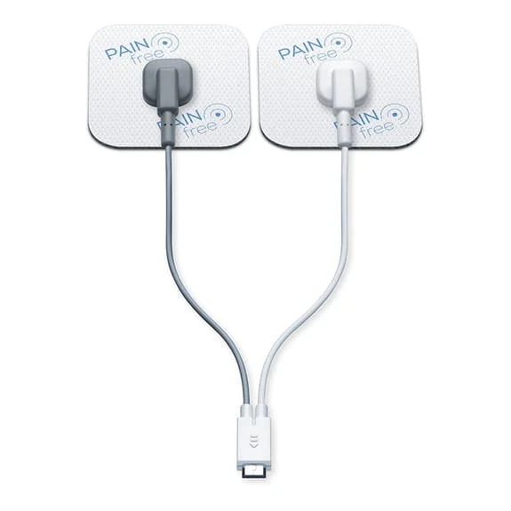 – 4 self- adhesive electrodes, including 1 large electrode (19 x 9.5 cm), 1 medium electrode (11 x 7.5 cm) and 2 small electrodes (5 x 5 cm)