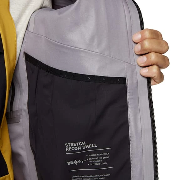 The Black Diamond Recon Stretch Ski Shell jacket is designed for the skier who demands performance and comfort. Combines a durable 4-way stretch fabric with the waterproof and breathable BD. dry solution. It has a chest pocket to hold the essentials and two inner mesh pockets for extra layers or skins. In addition, it has zipper ventilation holes for easy temperature regulation on the piste, a waterproof front zipper and a ski helmet compatible hood for added protection during stormy days.