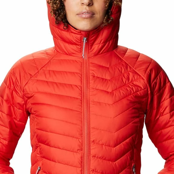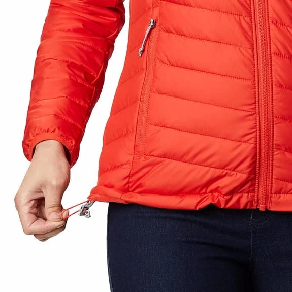 The Columbia Powder Lite Hooded women’s jacket features a reflective thermal lining and water repellent fabric. The hood, chin guard, side zip pockets and inside zip pocket provide extra protection for you and your valuables. The adjustable hem with girdle allows a perfect fit.