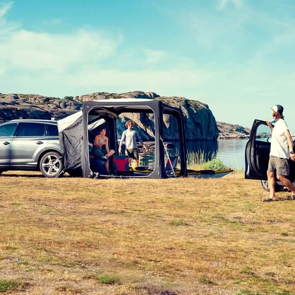 The Dometic HUB Shelter Connection Tunnel can be attached to the car with a zip for uncomplicated pitching.