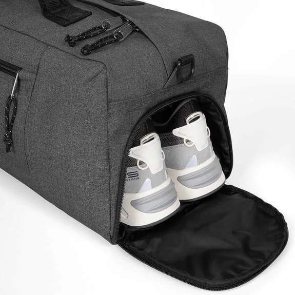 - Main compartment with pockets, front compartment and a side shoe pocket
