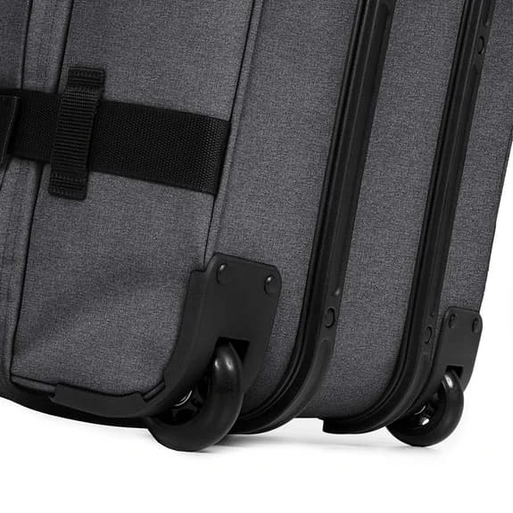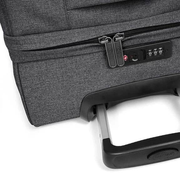 The Eastpak Transit’r L trolley is the revamped version of the wheeled suitcase with a stylish classic camouflage print. Fill the double compartments and securely store your belongings with the integrated padlock. This rugged case features aluminium tubing, protective non-slip studs and stylish finishes including contrasting grey piping, mesh detailing and diamond embossing on the handle.