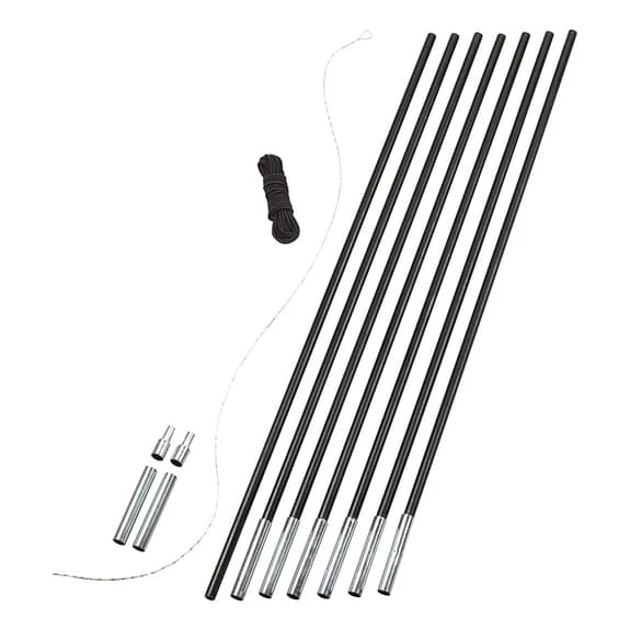 The Easy Camp Pole DIY Set includes 7 sections of 60 cm rods with everything you need to thread and mount an extra rod in case of breakage.