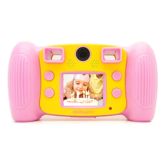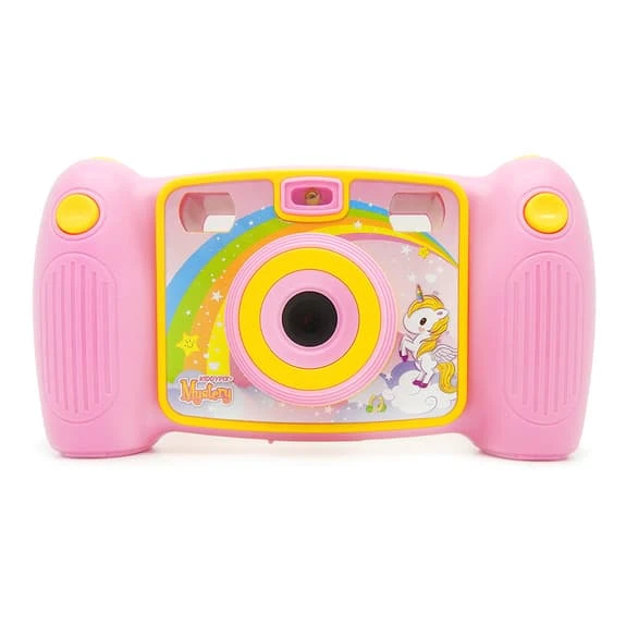 The Easypix KiddyPix Mystery action camera is ideal for youngsters. Its ergonomic shape makes it easy to grip without your fingers blocking the lens. The front lens offers beautiful images with a resolution of up to 5MP (by interpolation) and colorful videos with sound and a resolution of up to Full HD (1920×1080 @25fps by interpolation). The rear target is perfect for first selections. Thanks to the 2′ LCD screen, small photographers can immediately check their shots and decorate their photos with a wide range of fun and beautiful frames. The included hand strap prevents the camera from getting lost when playing outside or running around the house.