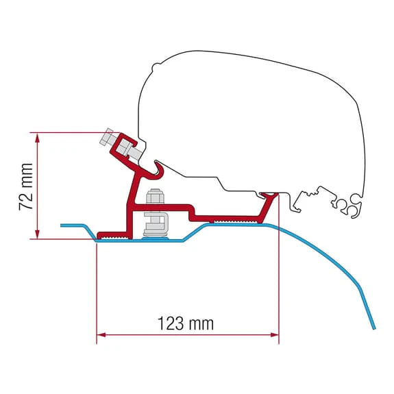The Fiamma Kit Ducato/Jumper/Boxer F80/F65 awning bracket is for awnings up to 3.70 m in length. It allows installation without the need to drill holes. This version is an extended model.