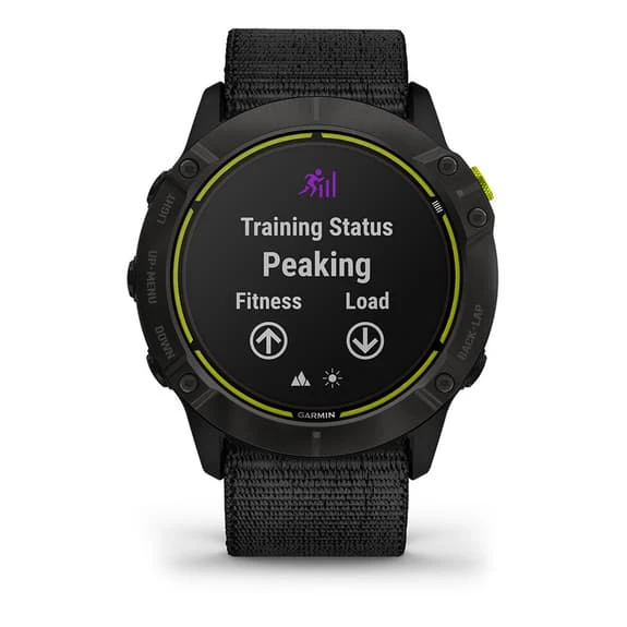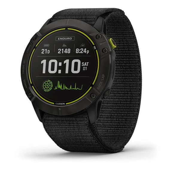 The Garmin Enduro is designed to race and built to endure. It has an always-on, sunlight-optimised 1.4′ display that ensures comfortable viewing, even when you’re on the move. Plus, it comes with key training features and an ultra-efficient processor so you can focus on the competition, not on battery life. The rugged, weather-resistant design withstands the harshest racing conditions with a lightweight, scratch-resistant diamond-like carbon (DLC) coated titanium or stainless steel bezel. It also features a super lightweight, stretchy, adjustable and durable sports strap.