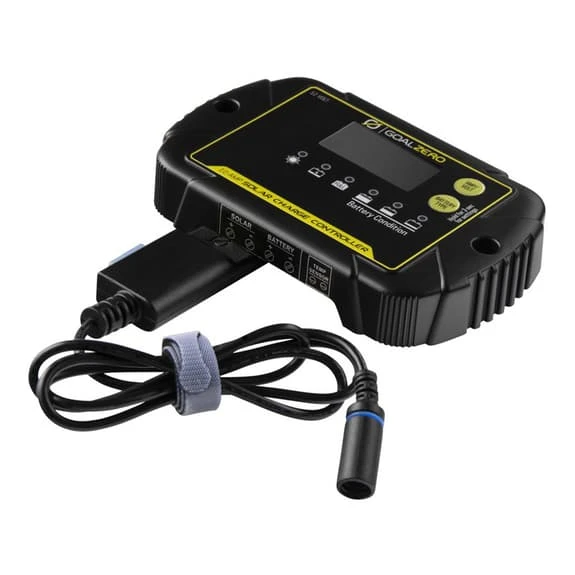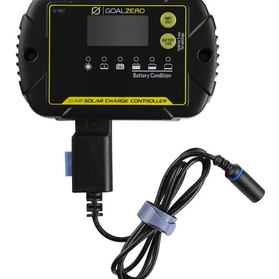 The Goal Zero 10 AMP charge controller allows you to control and regulate the solar input for 12V batteries. Designed to integrate seamlessly with Goal Zero’s solar panels, the charge controller comes with a pre-installed 8mm solar connector and an easy to read LED display. Equipped with an IP65 rating, the charge controller is weather and dust resistant, allowing protection from the elements when powering off-grid adventures or outdoor equipment.