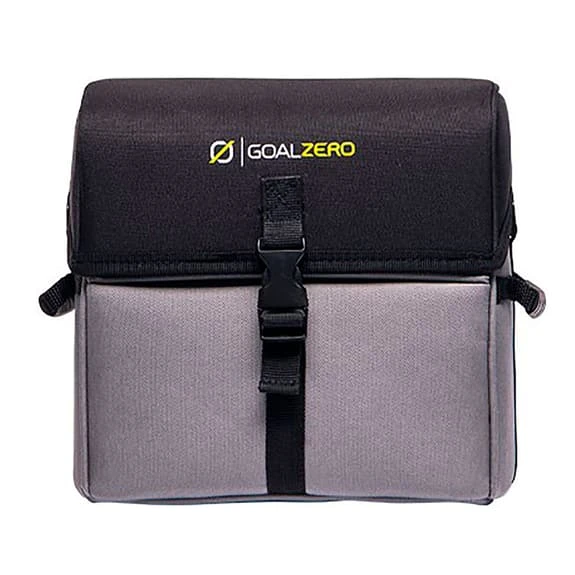 The Goal Zero Yeti 200X Protection battery case contains a shoulder strap for carrying and buckles for securing. It does not provide waterproofing for the Yeti, but it does provide protection.