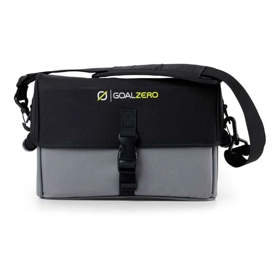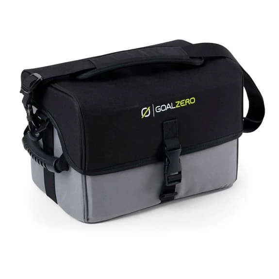 The Goal Zero Yeti 400 & 500X Protection battery case contains a shoulder strap for carrying and buckles for securing. It does not provide waterproofing for the Yeti, but it does provide protection.