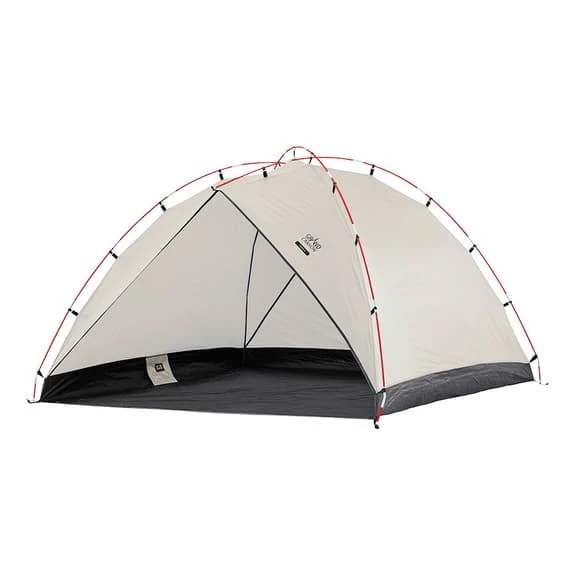 The Grand Canyon Tonto Beach 4 is a beach tent that can be set up and taken down quickly. The main pole and the two small poles are attached to the tent by means of the clips. The Velcro pockets can be filled with sand to ensure optimal ground anchoring, so you can set up your Tonto beach tent without having to nail down all the winds. It offers reliable protection against UV rays, wind and sun.