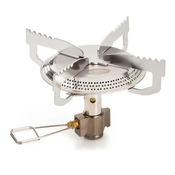 The GSI Glacier Camp Stove is designed to quickly and evenly heat larger pots and pans. The micro control valve provides precise and adjustable output. The toothed pot support arms, 125 mm/5′ in diameter, provide a stable and safe cooking platform.