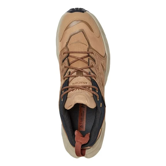 The HOKA Anacapa Low Gore-Tex shoes are sustainable hiking shoes for everyday use. This versatile model, designed with lightweight leather certified by the Leather Working Group, uses recycled polyester in the collar, mesh and laces.