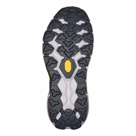 The Hoka Speedgoat 5 women’s shoes are back in a revamped version from the sole to the laces. For improved grip and braking power on loose terrain, they have been upgraded with Vibram Megagrip with traction lug. The fifth edition of the Speedgoat, 15 grams lighter and much grippier, features many innovations to improve performance. The weight reduction is due to fewer overlapping layers, which also results in a more sustainable construction.