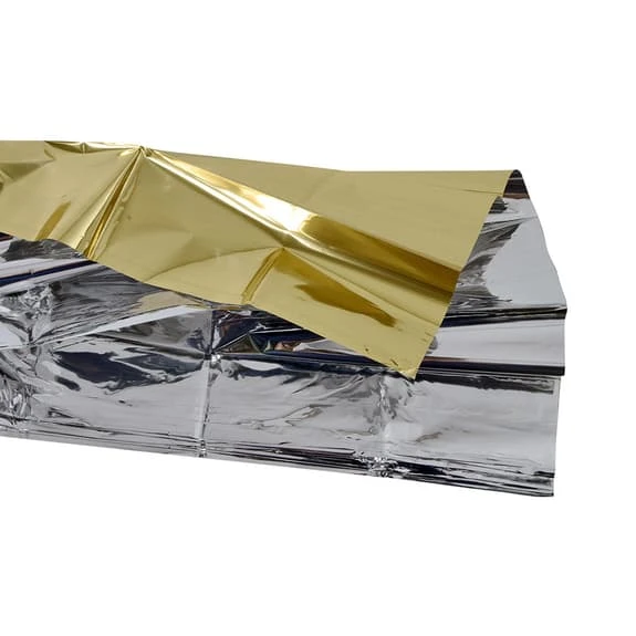 – Gold side captures heat and keeps you warm (fights potential hypothermia)