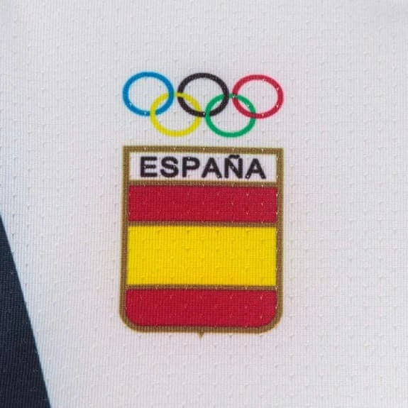The Joma Tokio 2020 Podium COE Short-Sleeved Polo is made from recycled polyester. The collar is made of rib and has an interior embroidered detail with the Spanish flag. The collar is buttoned and hidden by a placket with a Spanish flag on the inside. Features contrast colour trim on the collar and top and Spanish flag on the sleeves. On the back it has the sublimation ‘Spain’. J logo and COE shield embroidered on the chest.