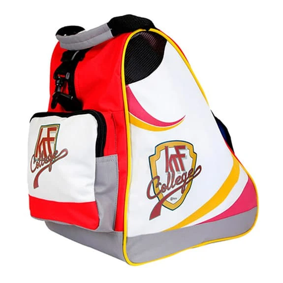 KRF College Skate Bag carries your skates and includes a ventilation grill, back pocket and adjustable hanging handle. Measurements: 37 × 21 × 37 cm.