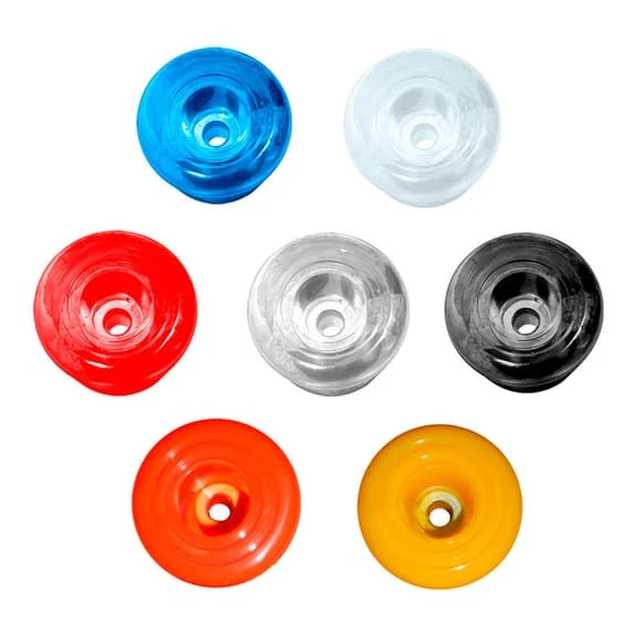 KRF silicone brakes for Quad, i.e. for quad skates with four parallel wheels. Made from Silicone. Colours available: Blue, White, Black, Orange, Red, Clear, Yellow. 2 unit pack.