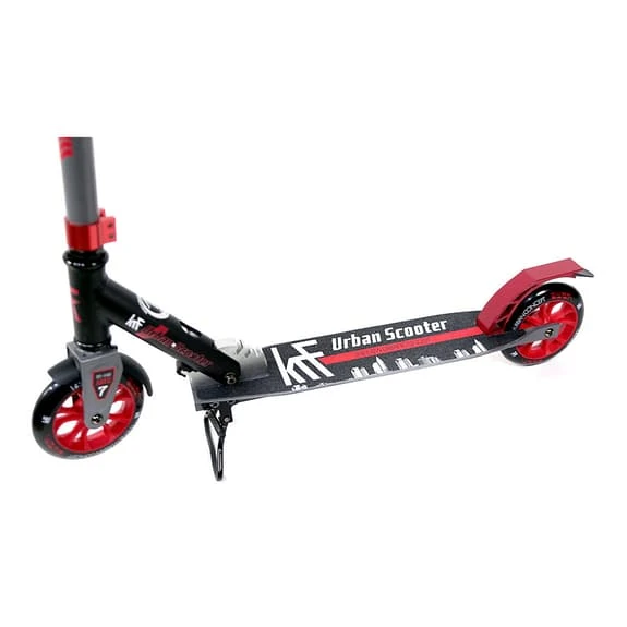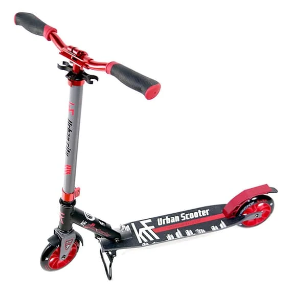 The KRF Urban City 145 Revolution scooter is designed for urban commuting, with a patented folding system that is quick and easy with the push of a button on the bar or mast. It is made of aluminium for lightweight yet robust transport. Its three-height adjustable handlebars (from 73.5 cm to 96 cm) are easy to adjust at the touch of a button. This scooter has a triangular kickstand for extra support and stability. The bicycle handles and the reinforced handlebars provide safety and comfort when moving around the city.