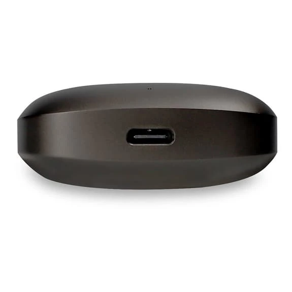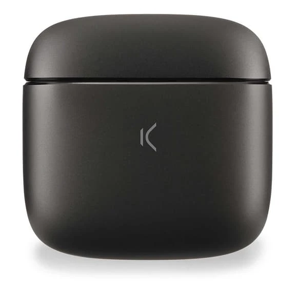 The metal charging case of the Spark headphones is all about design and quality. Its shape is reminiscent of the distinguished petrol cigarette lighters, albeit with curved forms more in tune with current design trends.