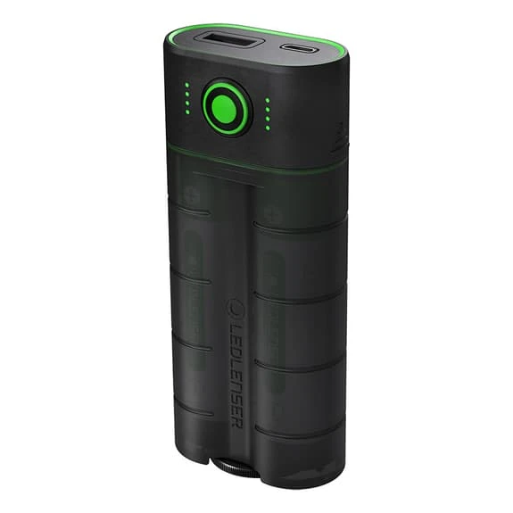 The Led Lenser Flex7 6800 mAh external battery has a charge level indicator, a battery indicator and a warning when the battery is low. It’s an external battery with quick battery replacement that is protected against water and dirt (IP65) and short circuits due to the double protection (battery and casing) that also acts as a battery charger.