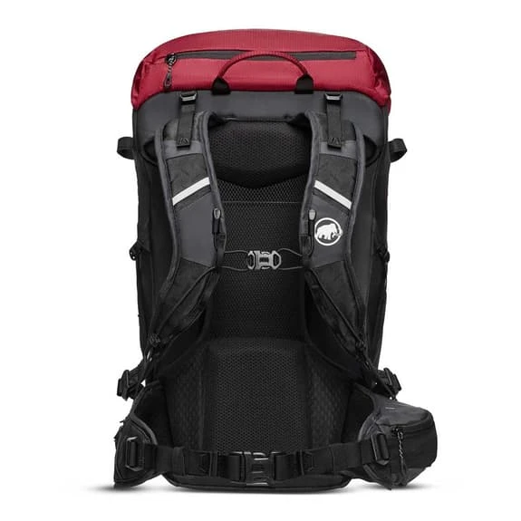 The Mammut Ducan 24L Backpack for women is intended for hiking. Its light weight will impress you. The side pockets are located within easy reach to allow access on the go, even when carrying the backpack. The hip belt includes a fold-out pocket for a phone. You have greater comfort thanks to the air space suspension system for ventilation of the back and an elastic strap on the chest. The straps and transport system are adapted to the female anatomy with lumbar belt and back section.
