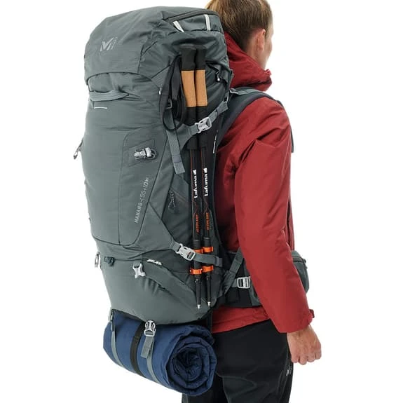 The Millet Hanang 55+10L women’s backpack has excellent ergonomic carrying capacity, thanks to its improved and very precise back adjustment system. Its compartments and accessories make life easier during long trips. Take everything you need for your trekking trip and optimize your comfort on the trails. Adapted to the female body, the well-fitting load feels lighter and easier to handle. This trekking backpack, satisfies all your expedition needs. Practically, its flap will become a small bag and ideal for a short excursion from your base camp. Carefully designed, it includes all the essentials for your long-distance travel and allows you to stay organized at all times.