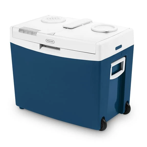 The Mobicool MT35W AC/DC cooler has a large capacity of 34L, it can store food and drinks for large groups. The extra thick insulation ensures reliable heating and cooling performance. With heating, cooling and extra-thick insulation functions, plus the ability to operate in upright or lying positions, it is a highly reliable thermoelectric cooler. It also has sturdy wheels for easy transport and a door within a door for quick and convenient access to the bottles. The integrated active battery safety prevents it from running on the vehicle battery, ensuring that you can keep driving all the way home. Includes interior dividers for organised storage of up to 34L of contents, with enough room for 1.5L bottles standing upright.