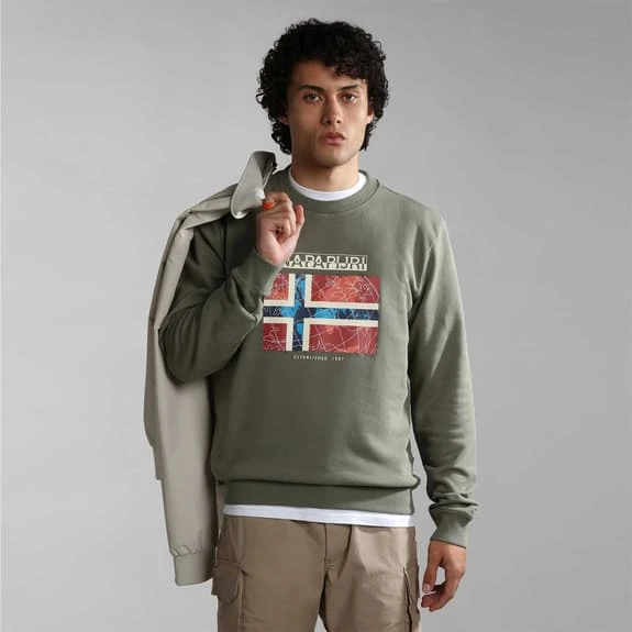 The Napapijri Guiro Sweatshirt was born from the intercultural tradition of Napapijri and its connection to extreme polar landscapes. This sweatshirt made of cotton offers maximum softness and comfort during the day. It features the Norwegian flag on the chest and owes its casual aesthetic to its round neck and elastic trims.