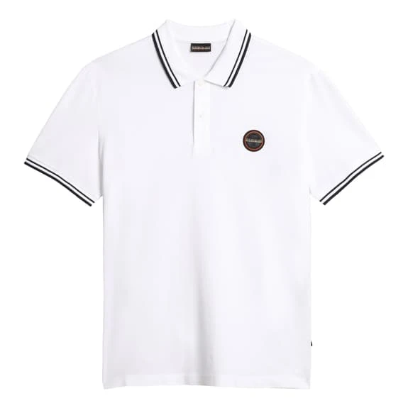 The Napapijri Macas Short Sleeve Polo Shirt has a modern, eye-catching design and contrasting stripes on the collar and sleeves. It is made from a breathable cotton fabric that is ultra-soft to the touch for maximum comfort throughout the day. It also features a classic button placket and an embroidered Napapijri patch on the chest.