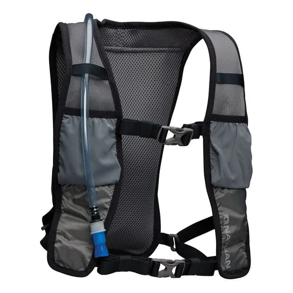 The Nathan QuickStart 3 litre hydration vest is very functional for running and trail running. It has a 1.5 litre hydration pouch inside. Its ventilated mesh design offers breathability to keep the body dry, while the adjustable front straps provide a secure, customizable fit for a variety of body types.