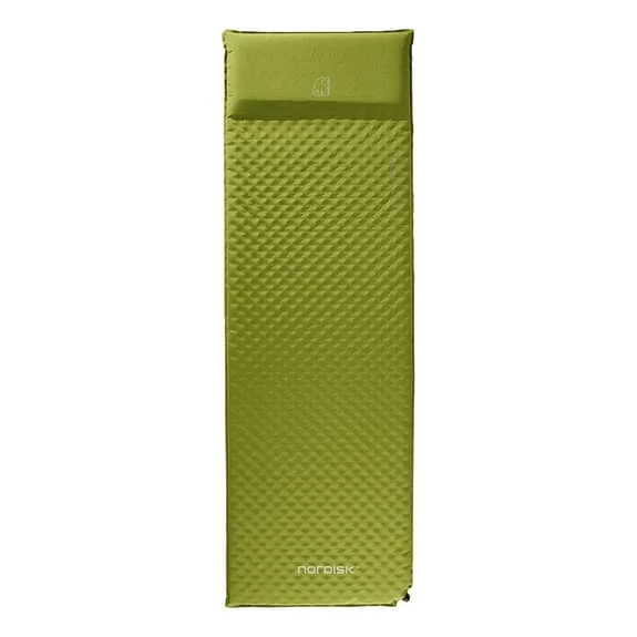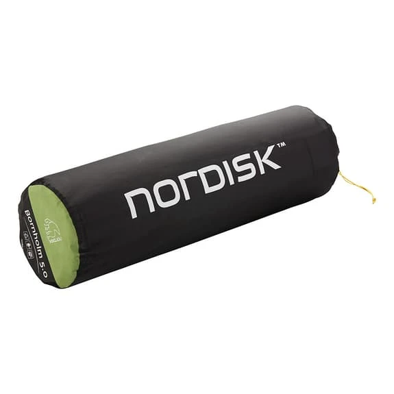The Nordisk Bornholm 5.0 mattress for sleeping on campsites with the guarantee of comfort. It has a good insulation, 5 cm thick encapsulated foam filling, with a very durable exterior. The back and front are made of high quality polyester microfiber, with a soft brush and finish. With functional details such as a built-in pillow and a valve for improved inflation speed, the Bornholm is intended for those who value comfort over weight.