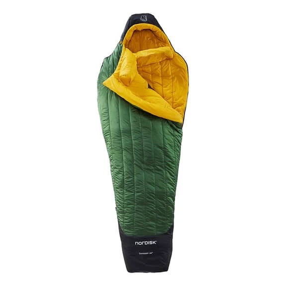 The Nordisk Gormsson Mummy M -20C sleeping bag is designed for use in very cold conditions. It is the next generation of the Nordisk Gormsson winter sleeping bag. Together with the offset double box chamber construction that resembles a brick wall, the Norguard S-PO 85 fibrefill offers high insulation properties. The cover is made of durable ripstop nylon and the lining offers a soft feel for a restful night’s sleep. The bag has an integrated shark-fin shaped foot box that keeps your feet warm, while your head stays warm in the 3D winter hood with hidden drawstring. The foot box offers easy ventilation to allow your feet to cool down. Internal thermal collar and chest pocket. When you don’t sleep but want to stay in the bag, the secondary side shoulder zip keeps you warm without compromising your mobility.