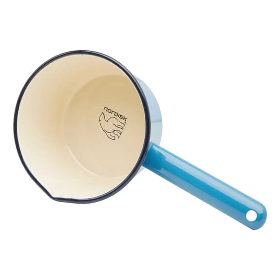 The Nordisk Madam Blå 900ml Saucepan can be used over an open fire, which makes it a totally practical utensil.