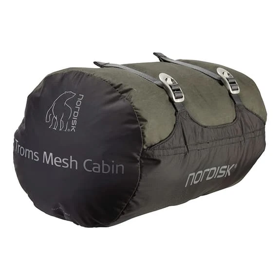 The Nordisk Troms Mesh Cabin tent is perfect for those who want to camp and sleep under the open sky or under a canvas shelter, without being error-free. For protection against the elements, the tent has a 40 cm wall on all sides, made of 15D Ripstop nylon, for greater resistance. So that 2 people can sleep inside, even the equipment can be fitted. It can be lifted with two poles, branches or between trees and requires only 6 picks and is compatible with all Nordisk Voss fabric shelters. It has two entrances, end and side, to be able to configure the shelter at will.
