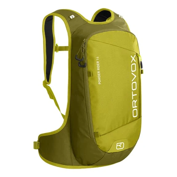 The Ortovox Powder Rider 16L backpack, at only 660 grams, is extremely lightweight but still has room for all your essentials. With fasteners for a shovel and a probe inside, your emergency equipment is always easily accessible. Its anatomically shaped backrest means that the POWDER RIDER 16 will sit very comfortably on your back. Its slim silhouette hugs the body and therefore adapts perfectly to every step.