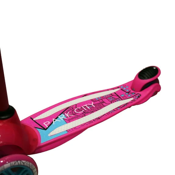 The Park City Tri Scooter Kid Funk Scooter is a convenient folding and transport scooter and easy to adjust to the right height, perfect for ages 3 to 6 years. Allows for proper steering control in the turn while driving due to the design of the shaft. In addition, it also provides effective stability thanks to its solid platform with double anti-slip grip. The structure of the inner frame is reinforced with steel. Its handles provide comfort thanks to their soft touch. In addition, they have a high impulse brake and the wheels are manufactured to have adequate high rebound capability. These have an adjustable locking function.