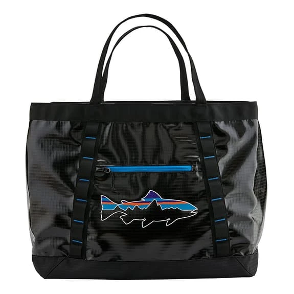 The 61L Patagonia Black Hole Gear Tote is the largest bag you’ll ever fill with a shelf, rope, shoes, bike parts, a collection of guides and a half-eaten lunch, and still have plenty of room. Made from tough, 100% post-consumer recycled polyester with a TPU film laminate and a DWR (durable water repellent) finish, this oversized bag resists abrasion, protects your equipment from the elements and stores everything. The clean design features a generous main compartment and an external zippered side pocket to protect easily lost details. Durable reinforced handles (made of 100% recycled nylon fabric) add strength and comfort for long-distance transport.