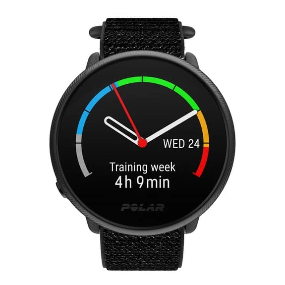 - 20 hours of battery life: in training mode (GPS and wrist heart rate recording) which can be extended up to 100 h with battery saving options. Up to 5 days in watch mode with continuous heart rate recording