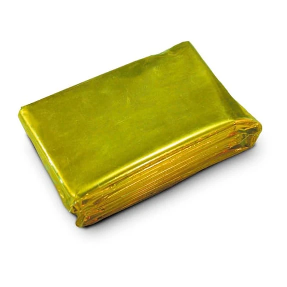 The Raidlight survival blanket is useful in case of casualties, but also for bivouacs of fortune, unforeseen wind on ridges, etc. It has one side silver and the other gold, for different uses: in case of hypothermia, the silver face of the blanket is placed in contact with the body; and to protect itself from the heat, with the golden face in contact with our body.