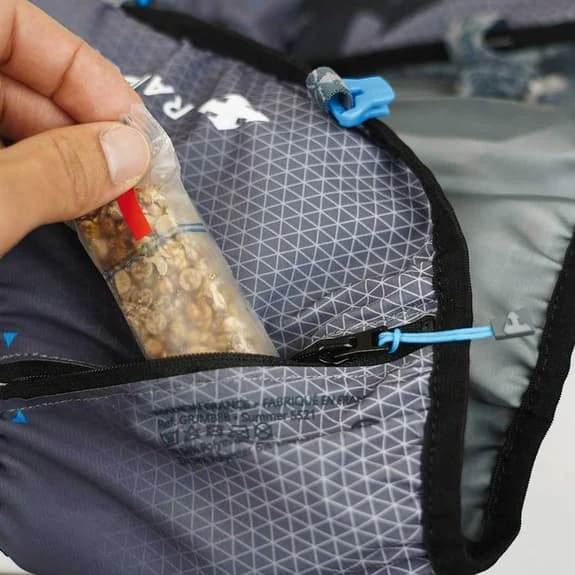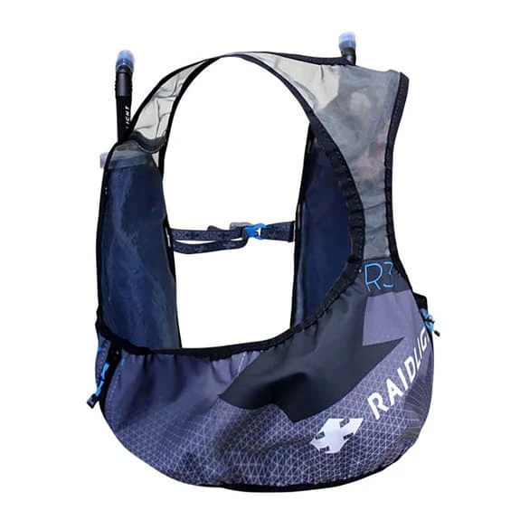 The Raidlight Revolutiv 3L hydration vest is a radically lightweight race vest. The vest is constructed with a monofilament mesh for great weight savings and increased breathability. The pocket storage system uses Payen fabric, which offers high tenacity and super fast drying for stability and comfort. The back pocket is zipped for extra security.