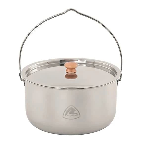 The Robins Outback Ottawa Pot 4L is made from strong stainless steel and includes a special upper handle with a hook attachment point. The wooden knob helps protect hands from heat.