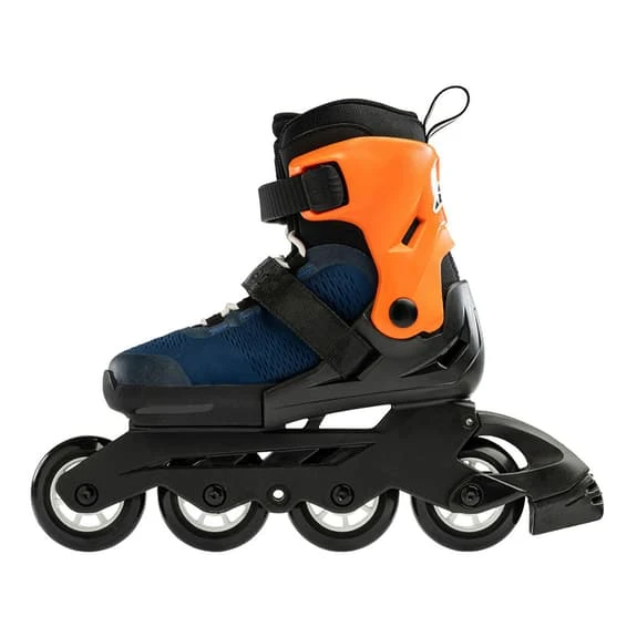 Microblade Rollerblades for children are adjustable skates. They come in four full sizes. An easy-to-use extension system works at the touch of a button, and the markers in the toe area align the skates to the correct size. These skates provide better support and help improve stability, balance and control. Both the Junior Fit linings and the mesh are designed to make the Microblade comfortable, and the closure system provides a secure fit while being easy to put on and take off.
