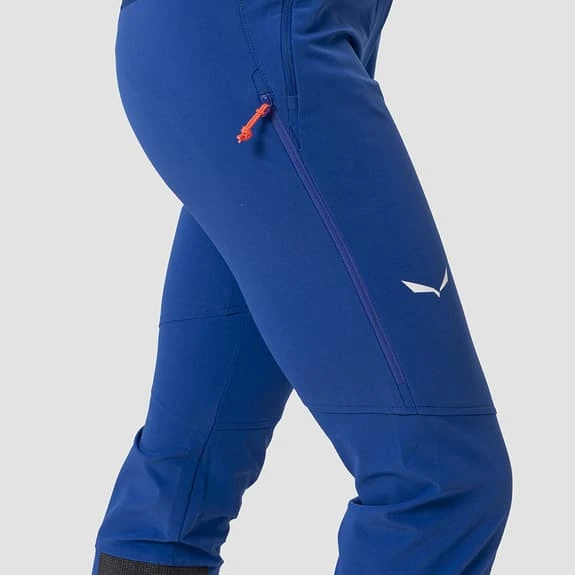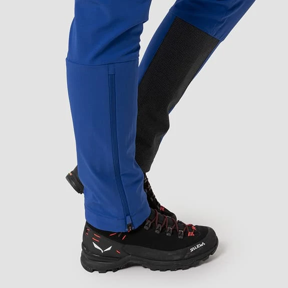 The Salewa Lagorai Trousers are designed with a sporty cut in a lightweight, abrasion-resistant, fast-drying Durastretch nylon fabric treated with a durable waterproof finish (DWR) without PFC. The four-way stretch performance of the fabric and the reinforced seams on the inside guarantee total freedom of movement during long ascents, downhill runs and ice climbing. Bamboo also provides natural properties that help inhibit odor-causing bacteria and keep the fabric fresher for longer.