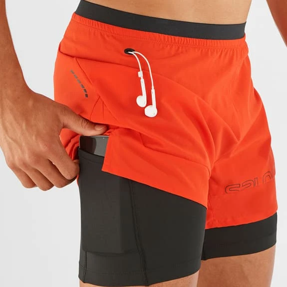 The Salomon Cross 2in1 Shorts let you feel great on the trail, in the gym or during any high-intensity activity. The elastic inner brief gives you more coverage and comfort. The exterior is made from quick-drying recycled polyester. In addition, features such as the zippered pocket and hook enhance its versatility.