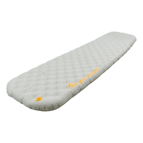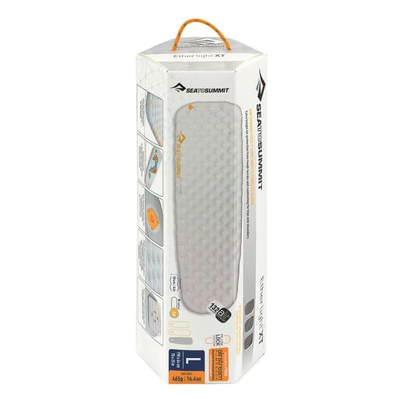 The Sea To Summit Ether Light XT mat is the lightest and thickest mattress thanks to Air Sprung Cell technology and system. This Air Sprung Cell technology creates sections throughout the mat that will feel more comfortable when stretched, while when folded it will take up minimal weight. The initials XT stand for Extra Thick. This mountain sleeping mat is 10 cm thick. The insulation capacity of this Sea To Summit mat is low, so we recommend it in warm temperatures. The extra height of this Sea To Summit Ether Light XT mattress allows it to create larger air pockets when inflated, and when deflated, it weighs the least. It also adds anti-microbial and mold protection. And a puncture repair kit.