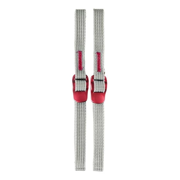 Versatile accessory straps with lightweight anodized aluminum buckles. Perfect for securing our cargo to the luggage rack of the car, overloading on the outside of our backpacks or any other type of cargo safely and quickly.